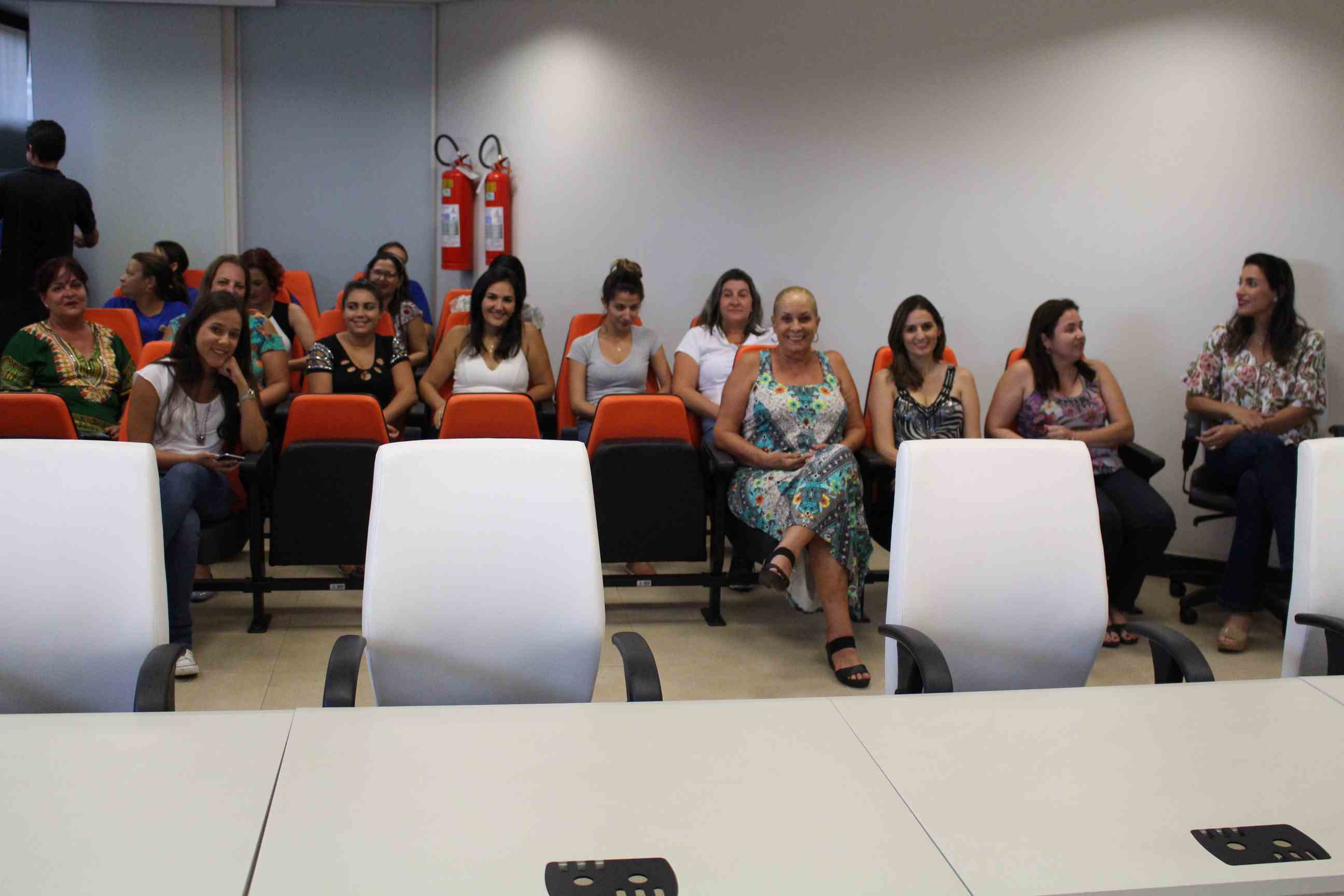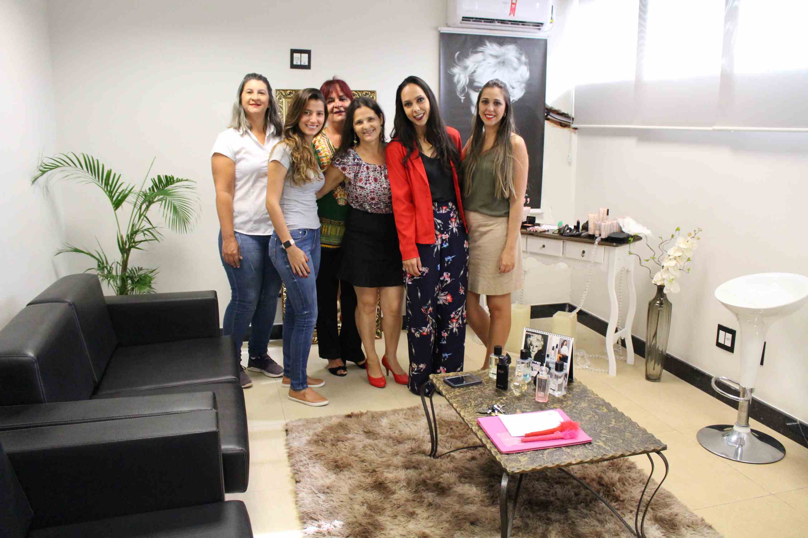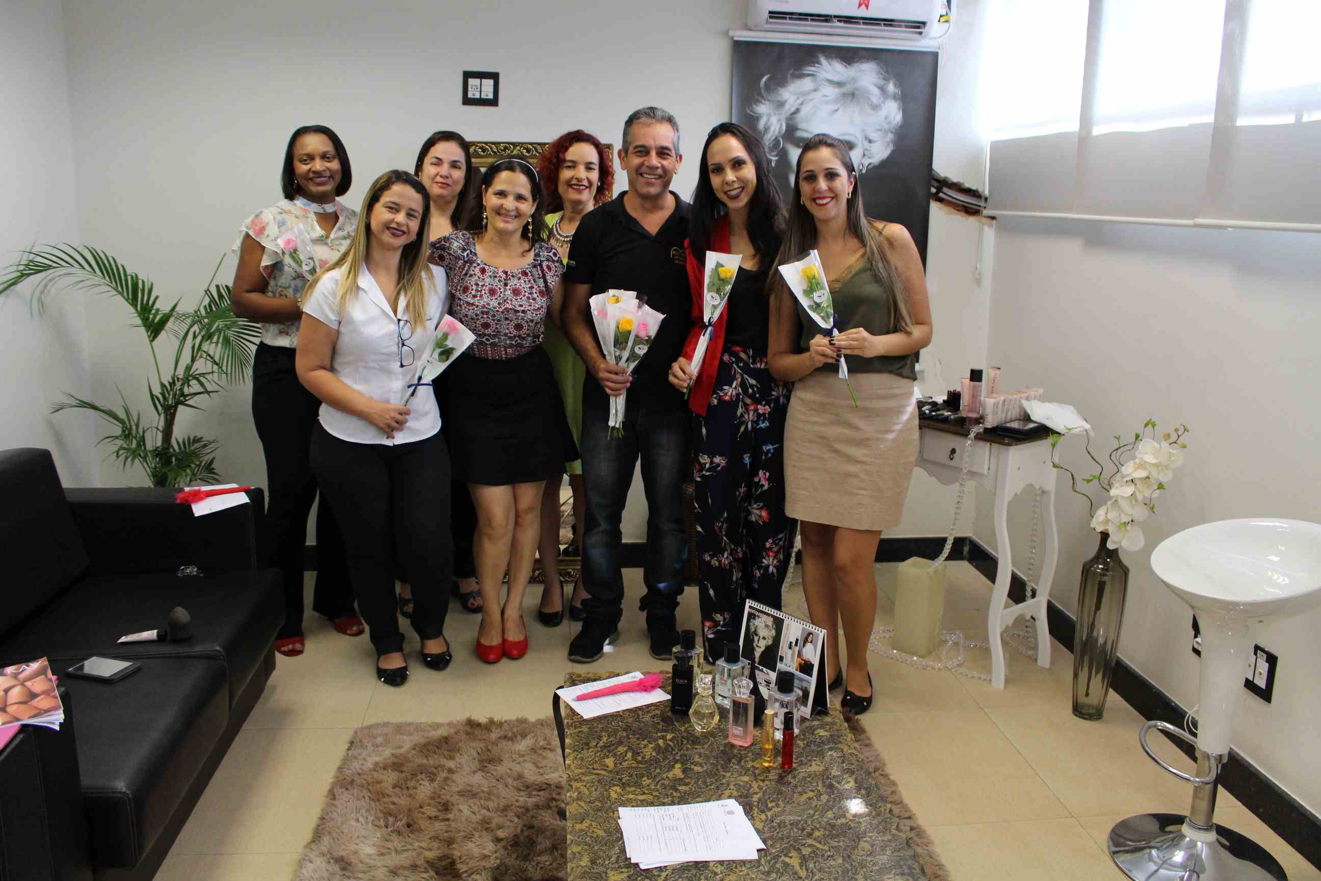 Em uma sala decorada com muito bom-gosto, a servidora Aparecida Moreira recebeu as ilustres convidadas e homenageadas do dia, com um delicioso coffee break. Camila e Mariana deram dicas de beleza e apresentaram os produtos para cada uma delas.