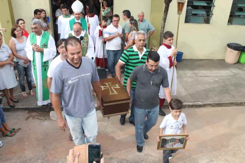 No final da celebração aconteceu o momento mais emocionante, quando a urna com os restos mortais de Padre Hernani foi depositada na capela de Santa Luzia, por representantes da comunidade e da família. “Hoje estamos completando o pedido do meu irmão antes de morrer. Ele disse que seu desejo era ser enterrado em Pará de Minas. Agora ele descansa em paz ao lado de Nossa Senhora Auxiliadora, Jesus e Santa Luiza. Temos muita gratidão por esse povo que acolheu com tanto amor Padre Hernani”, falou Graça.