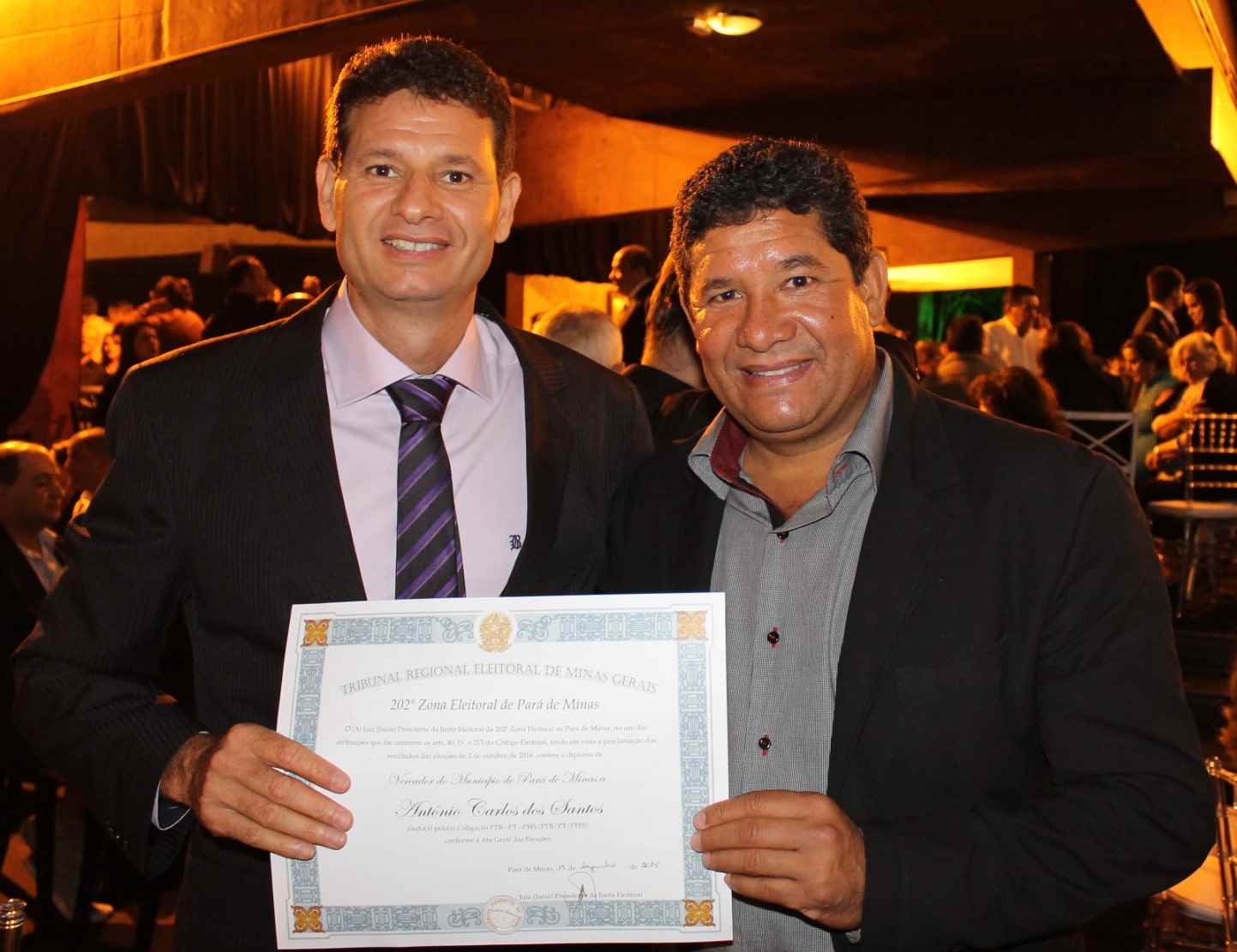 O Patafufo Country Club, localizado no bairro Patafufo em Pará de Minas, sediou na noite chuvosa desta quinta-feira, 15, a solenidade realizada pela Justiça Eleitoral de diplomação dos prefeitos, vice-prefeitos e vereadores eleitos dos setes municípios que compõem a Comarca de Pará-minense: Florestal, Igaratinga, Onça de Pitangui, Pará de Minas, Pequi, São José da Varginha e São Gonçalo do Pará. O clube ficou lotado com a presença de familiares e amigos dos diplomados, além de autoridades municipais, estaduais e federais.