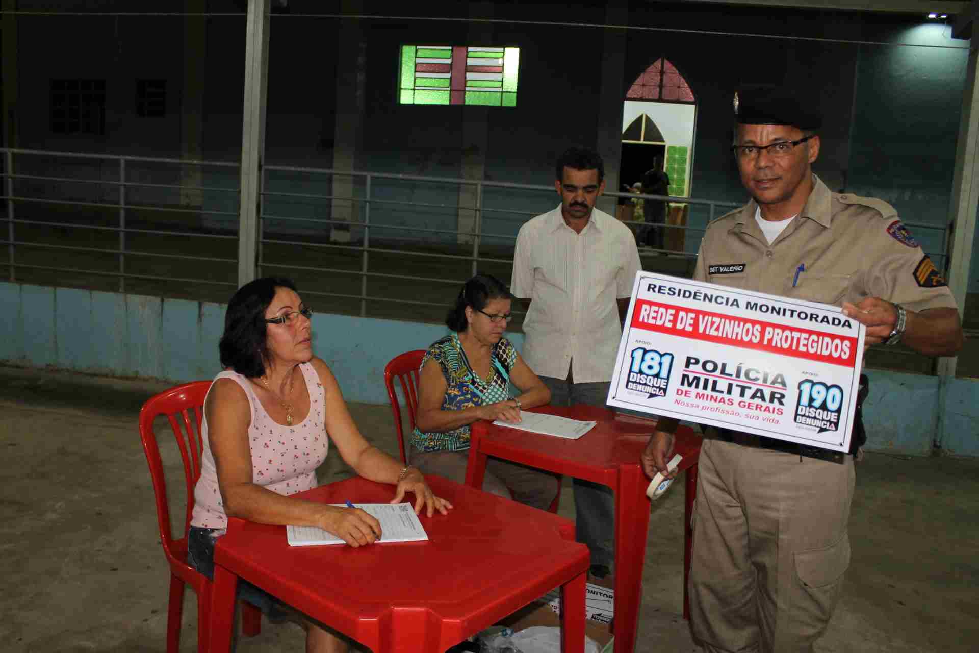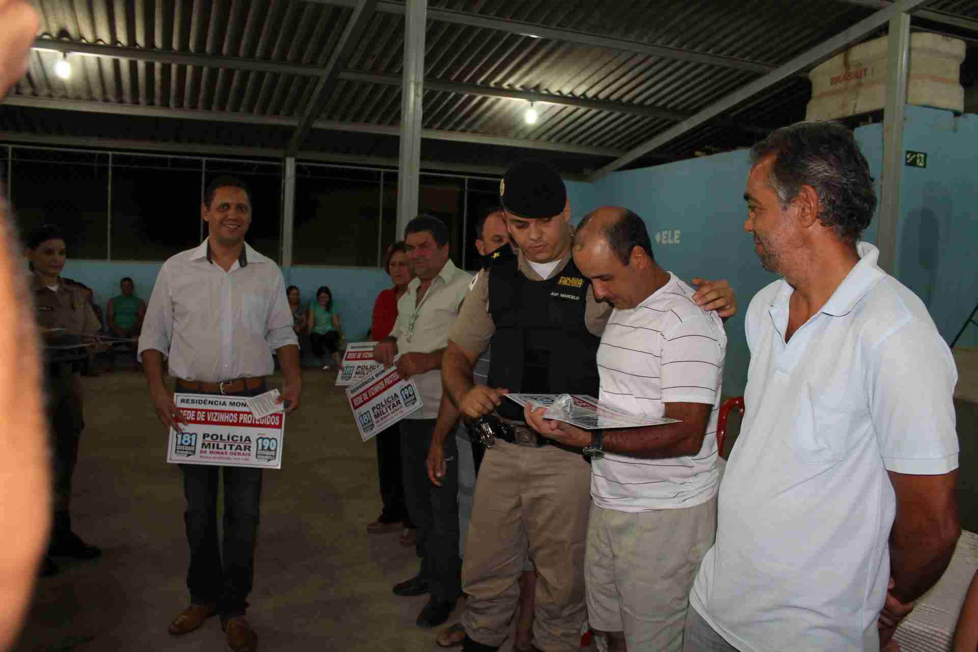 Os moradores se reuniram no salão da Igreja Matriz para receberem orientações dos militares da 19ª Cia Independente de Polícia Militar de Pará de Minas. O objetivo do programa é criar uma rede de proteção entre os vizinhos no combate ao crime. “Precisamos que as pessoas denunciem qualquer movimentação estranha na comunidade. Ajude olhar a casa do vizinho que viajou e cuidar do patrimônio público, evitando ação de vândalos. Queremos aproximar a comunidade da polícia e assim garantir a segurança de todos”, afirmou a Tenente Sheila Guedes.